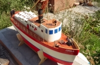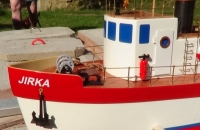 Při brouzdání po modelářských stránkách jsem narazil na stránky pana Jakoubka z Velkého Poříčí, který se mimo jiné zabývá i výrobou modelářských parních strojů a modelů lodí k nim.A protože mám od mládí pro parní stroje slabost, hned jsem objednal stroj a model lodě.Dokoupil jsem bižuterii a dal jsem se do stavby. Model je probarvený laminát,přesně vyrobený a dá se postavit ve více variantách. Palubu a stanoviště kormidelníka jsem oplaňkoval dýhou, funkční větrací okna olepil měděnými O kroužky z Mototechny. Dá se doporučit i začátečníkovi.